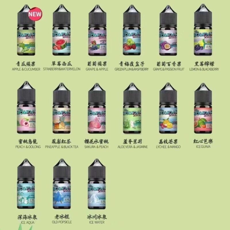 HOLIDAY SALT 假日煙油正品進口,台灣現貨,每瓶含30ML/35MG丁鹽,具有獨特和持久的尼古丁口味。其細緻的口味使其成為各種大煙吸煙者的首選。無論您是新手還是老手,HOLIDAY假日煙油都能滿足您的各種吸煙需求。 煙油2瓶起出貨,不滿兩瓶不出貨,領取包裹時請認準我們提供的取件碼並錄製拆箱影片!收到商品有任何問題聯繫客服